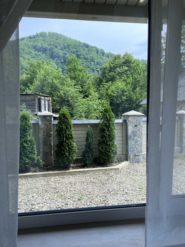 За 100 метрів від будинку протікає річка Черемош з інстаграмним дерев'яним підвісним містком.