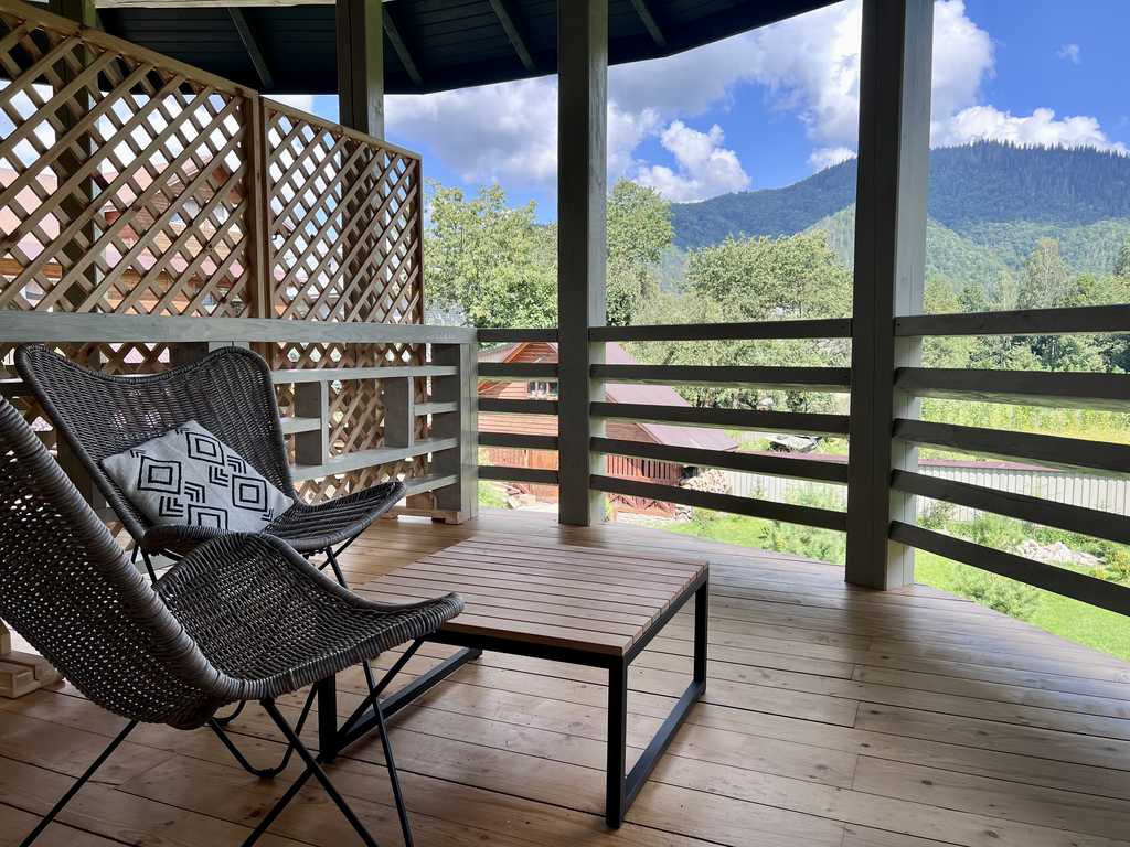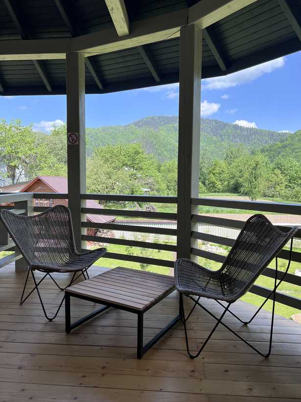 За 100 метрів від будинку протікає річка Черемош з інстаграмним дерев'яним підвісним містком.
