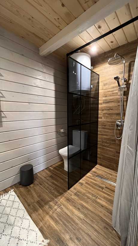 Своя кухня з усім неохідним для приготування їжі (холодильник, плита, чайник, посуд, каструлі, сковорідка...). Свій санвузол (рушники, фен, мило, м'який туалетний папір).