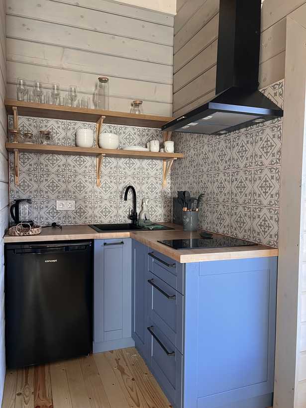 Своя кухня з усім неохідним для приготування їжі (холодильник, плита, чайник, пос...