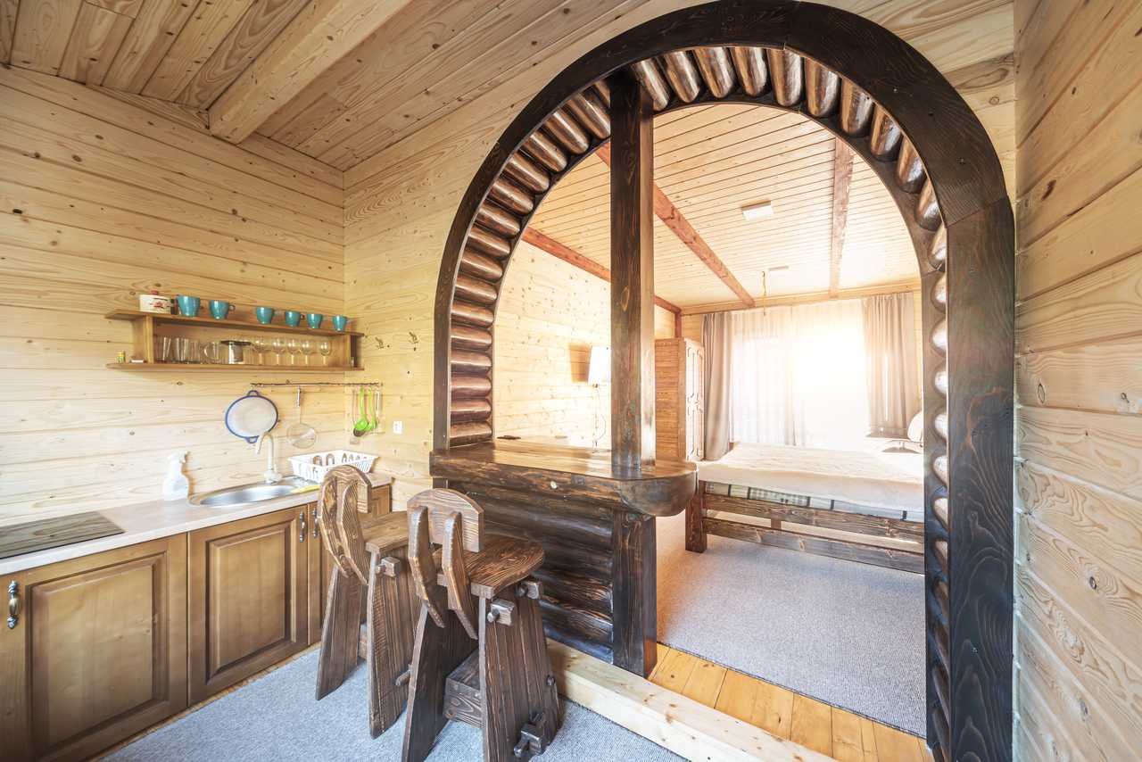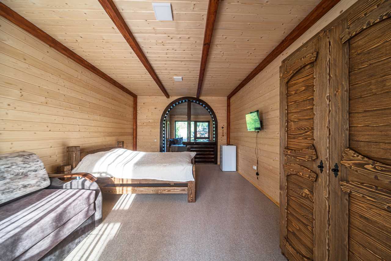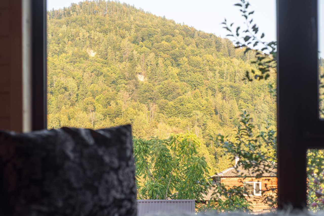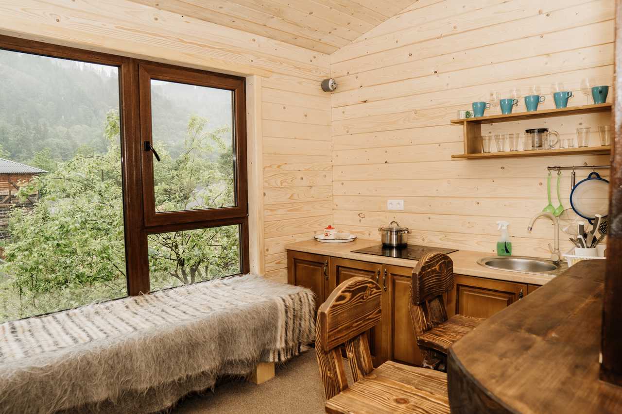 Перевагою номеру є власна кухня, яка відділена від спальних місць барною стійкою, обладнана усім необхідним для самостійного приготування їжі (електрична плита, посуд, електричний чайник, холодильник). А також великі панорамні вікна, які нікого не залишать байдужими від посиденьок на широкому підвіконні-лавиці, за чашкою кави, милуючись гірським краєвидом.