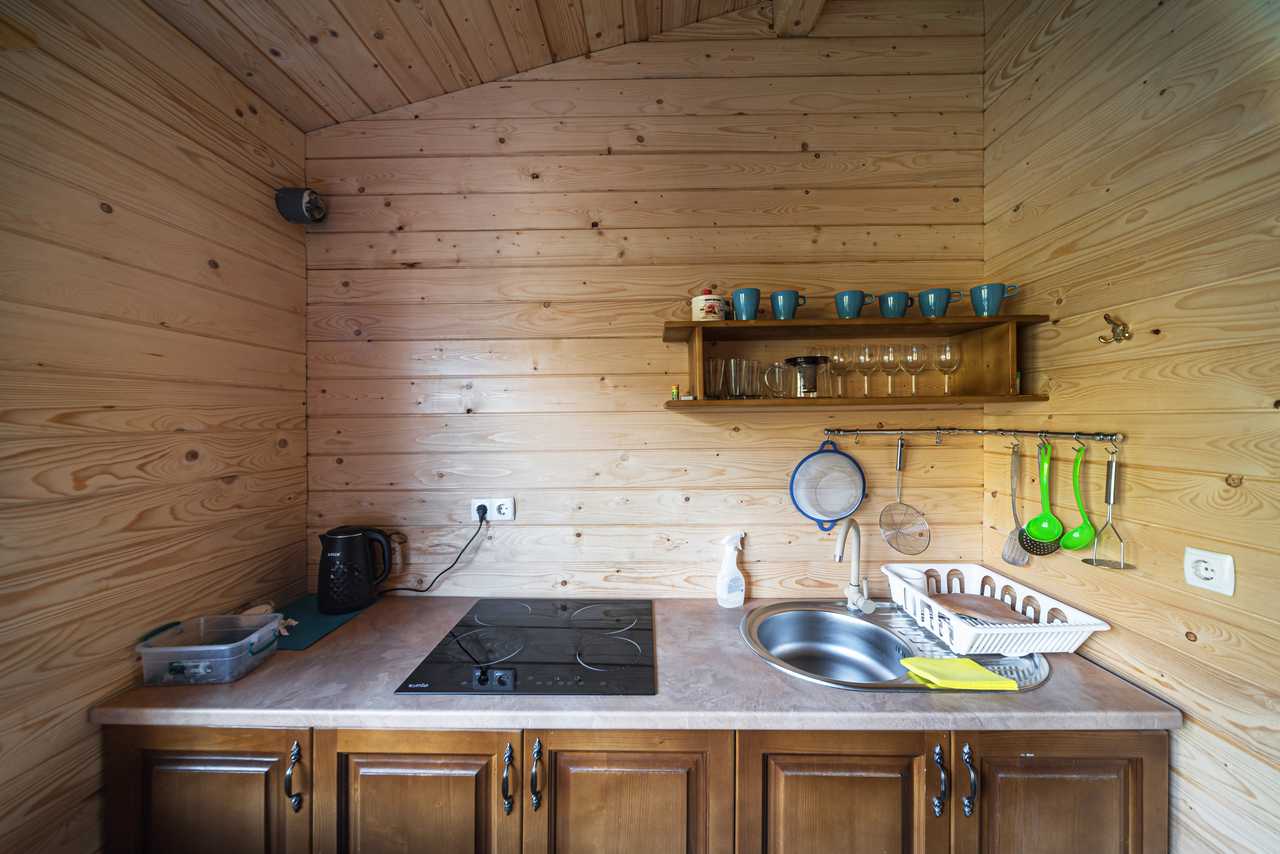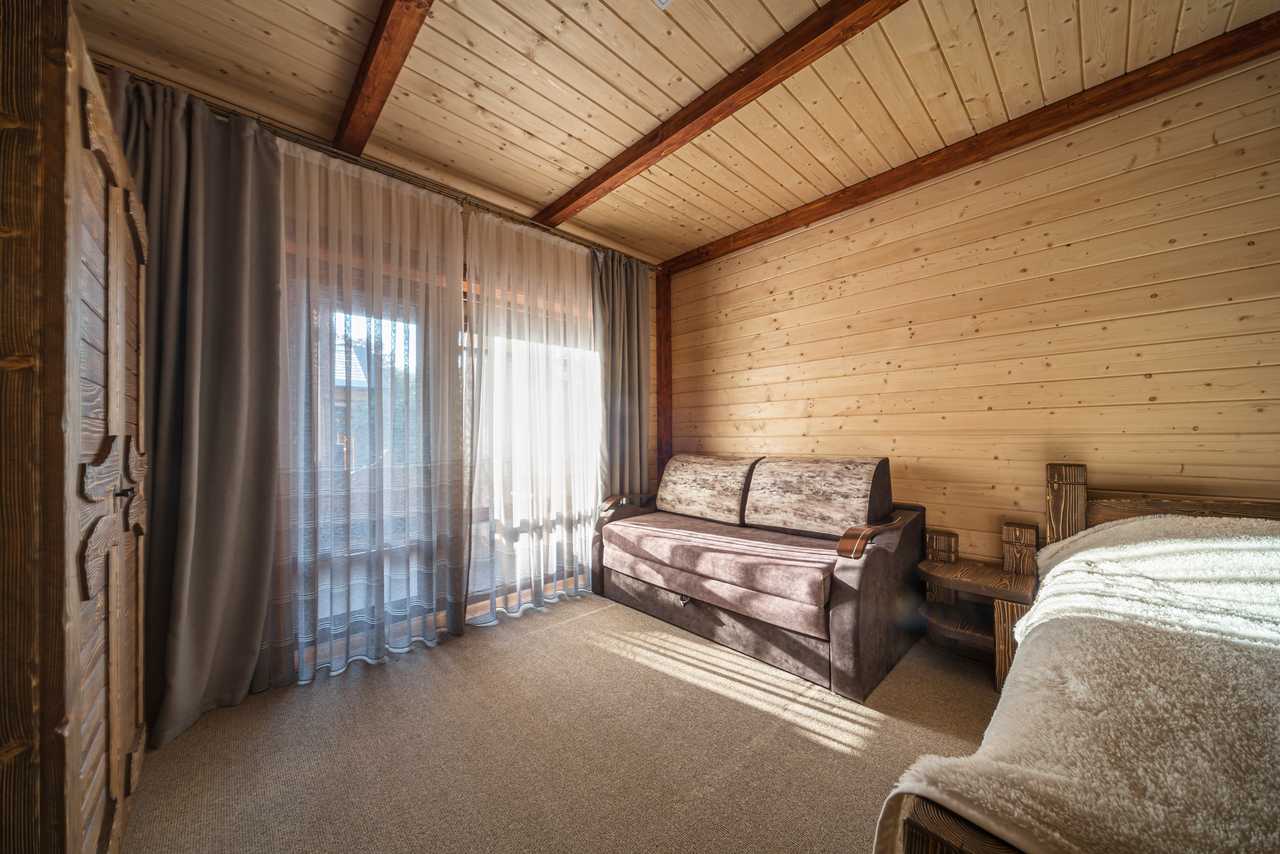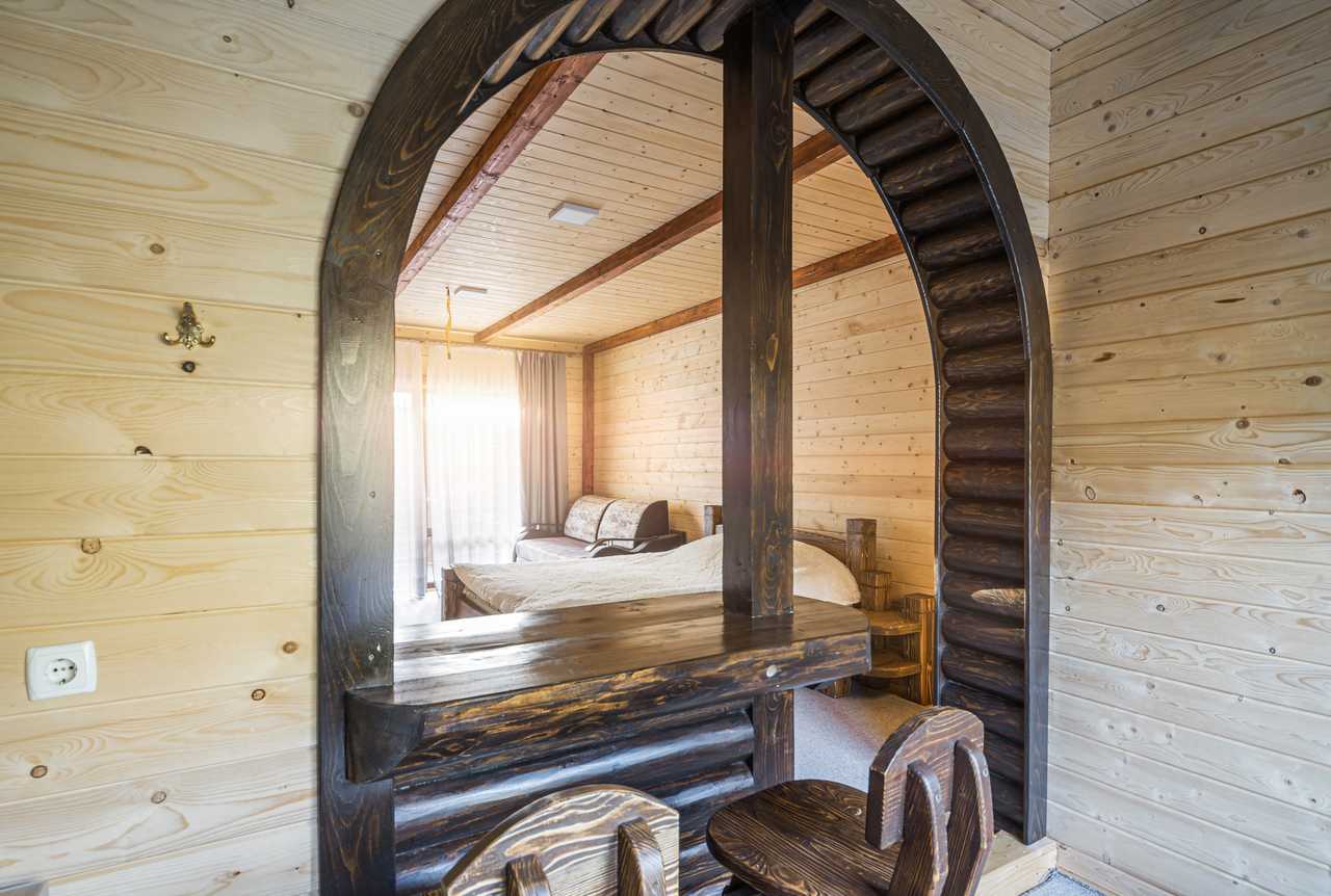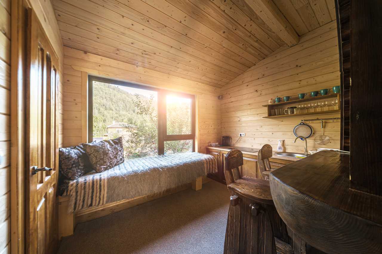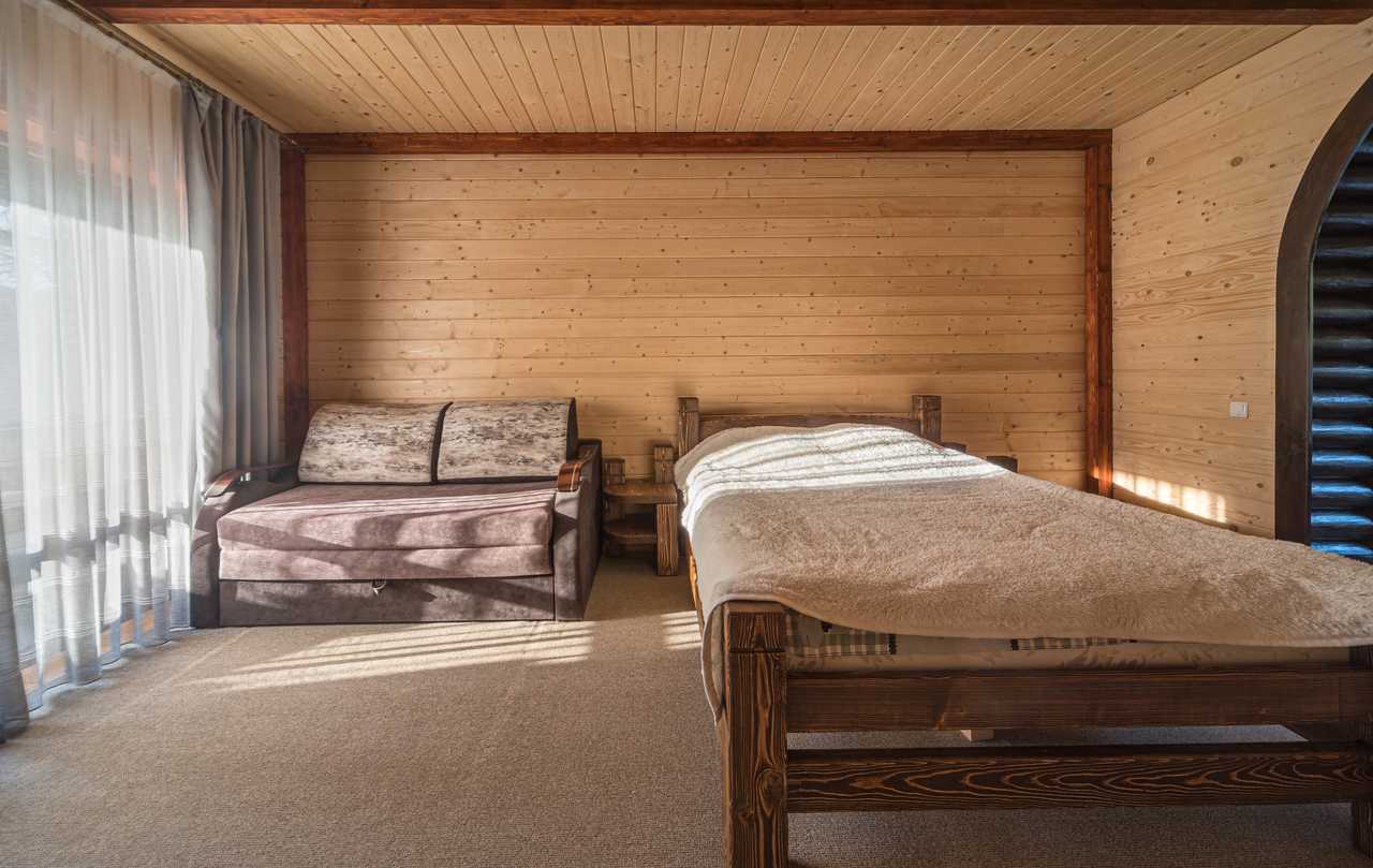 Перевагою номеру є власна кухня, яка відділена від спальних місць барною стійкою, обладнана усім необхідним для самостійного приготування їжі (електрична плита, посуд, електричний чайник, холодильник). А також великі панорамні вікна, які нікого не залишать байдужими від посиденьок на широкому підвіконні-лавиці, за чашкою кави, милуючись гірським краєвидом.