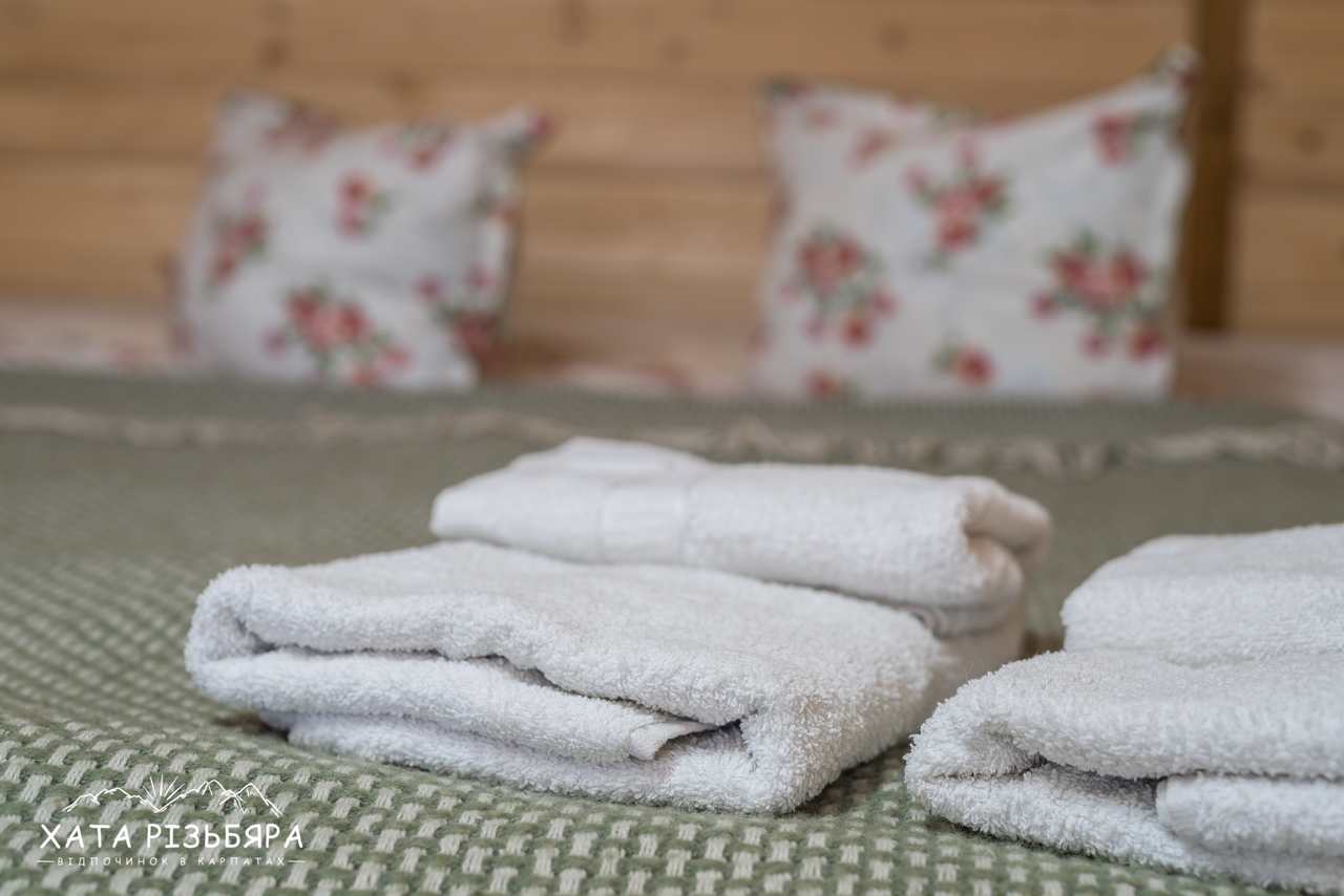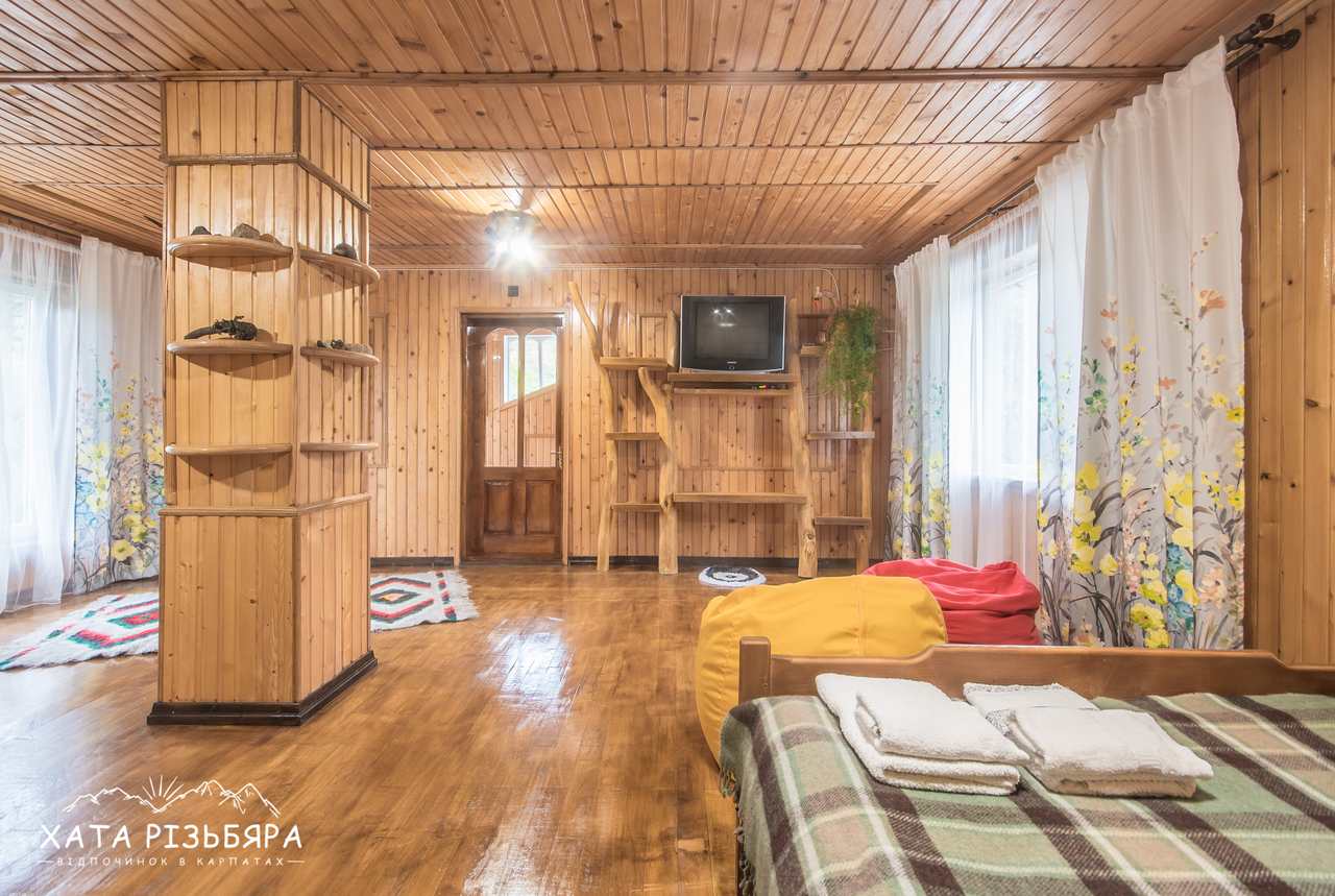 На зимній період (в тому числі на Новий Рік) опалюються три номери (два двомісних та тримісний). Чотиримісний номер НЕ ОПАЛЮЄТЬСЯ!До послуг гостей сучасна кухня з необхідним приладдям (кухонний набір з плиткою, духовка, мікрохвильова піч, чайник, посуд, холодильник) та меблями (стіл, диван). Гості можуть готувати їжу самостійно або замовити готові страви у господині.
