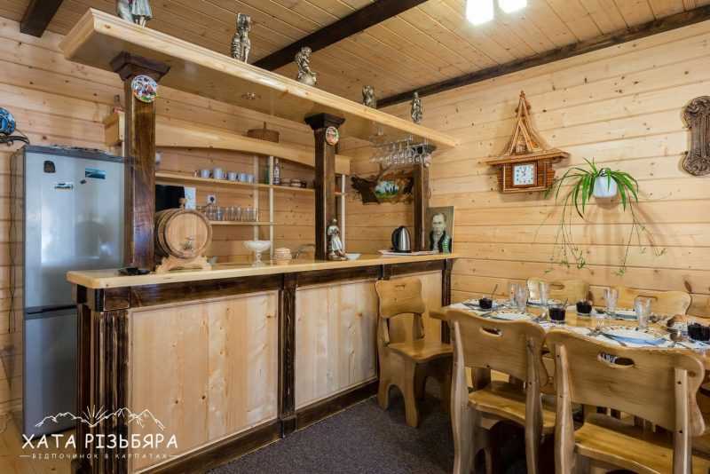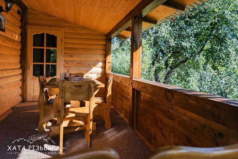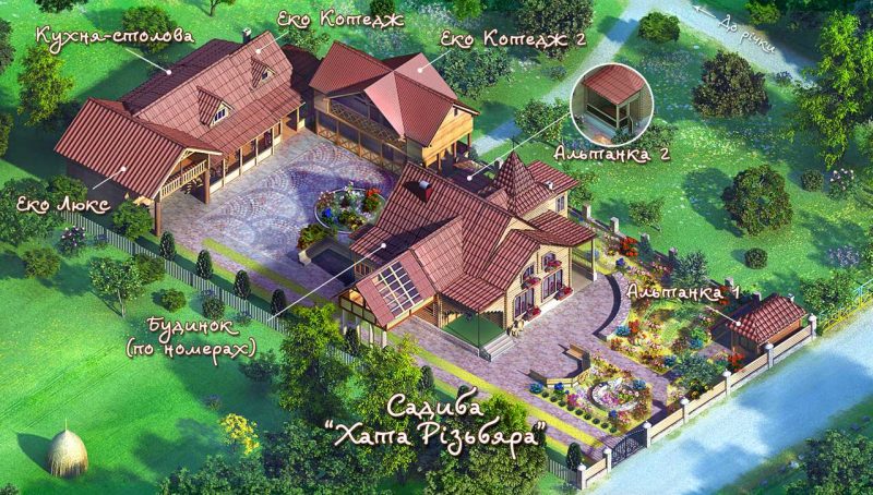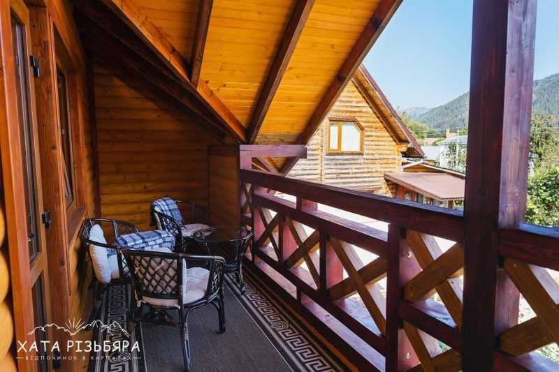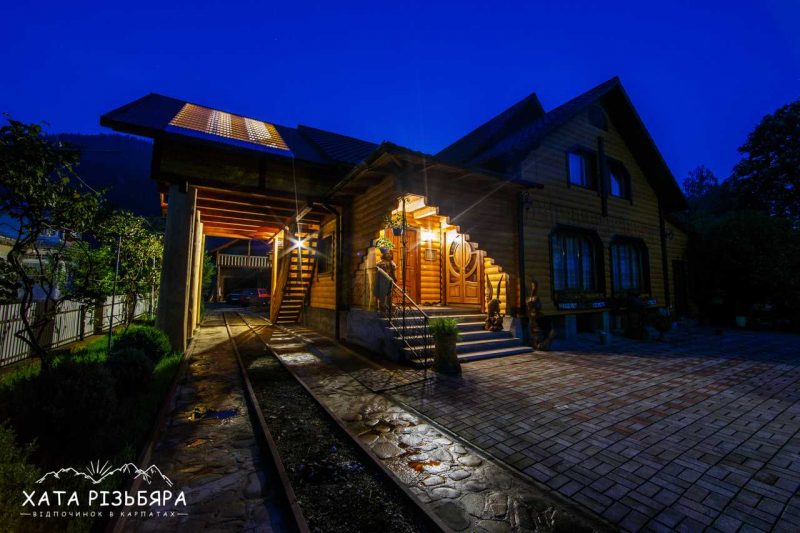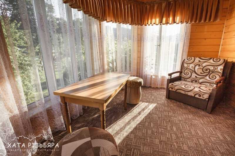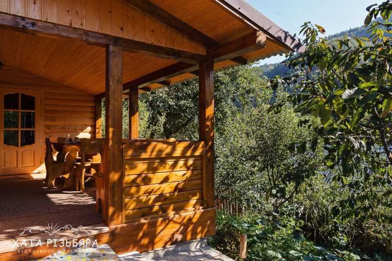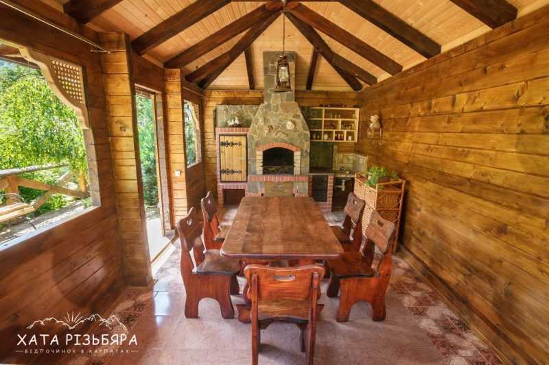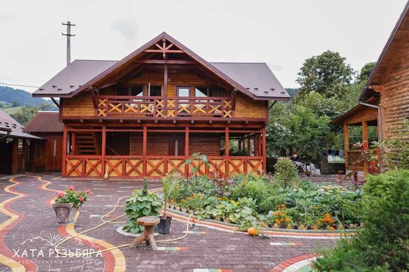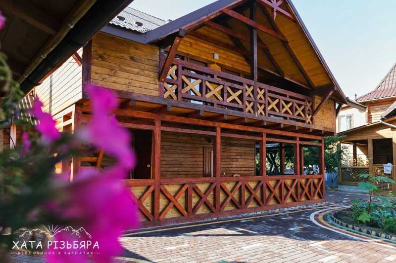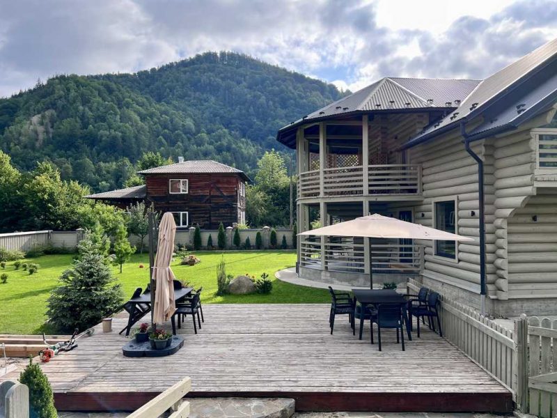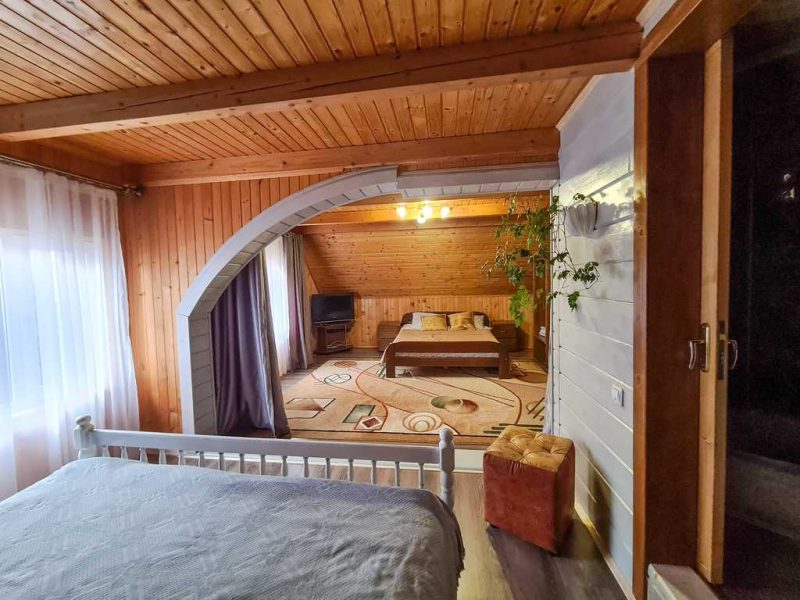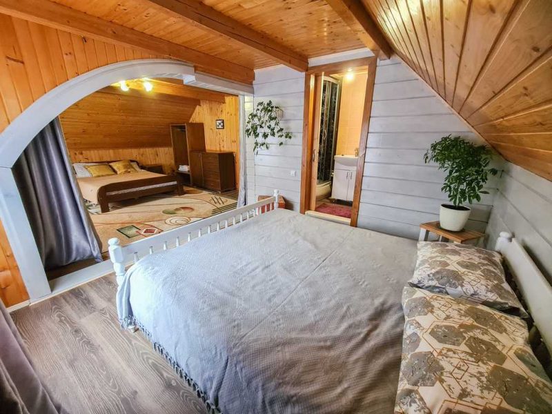 Дерев’яний котедж на 4 номери (2х та 3х місні). Повністю обладнана кухня та їдальня. Два санвузли. Простора територія з унікальним ландшафтним дизайном. Дві зручні альтанки. Здається по номерам.