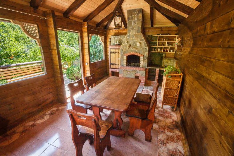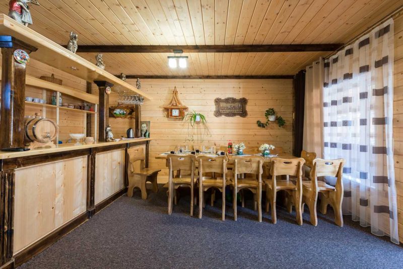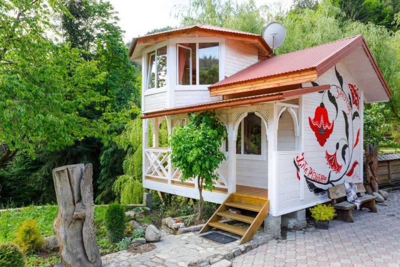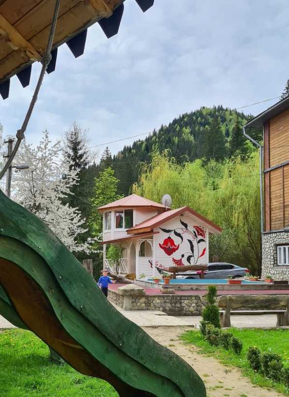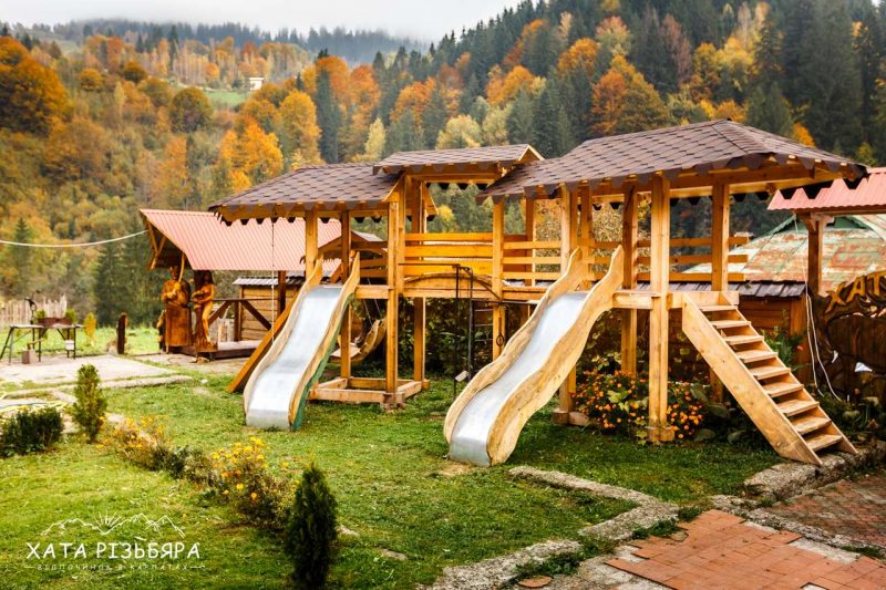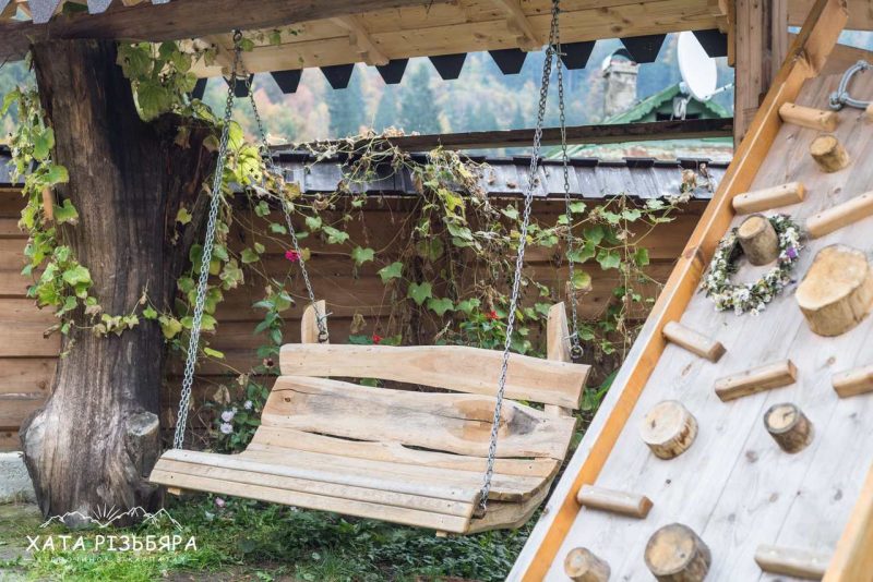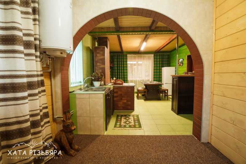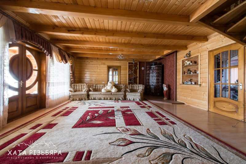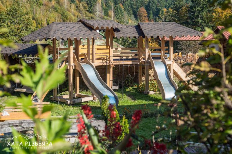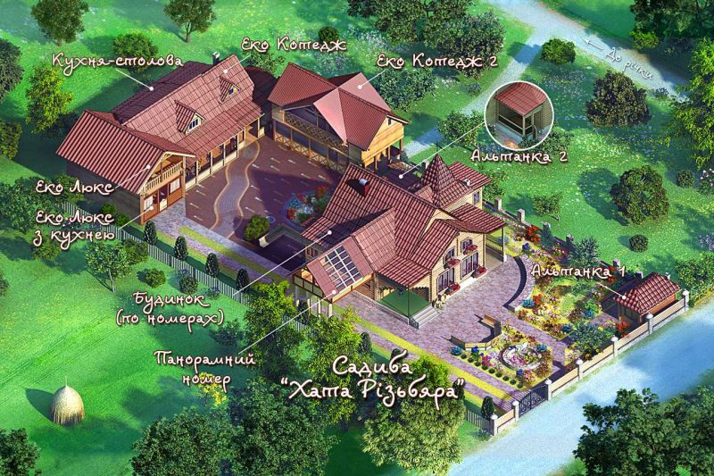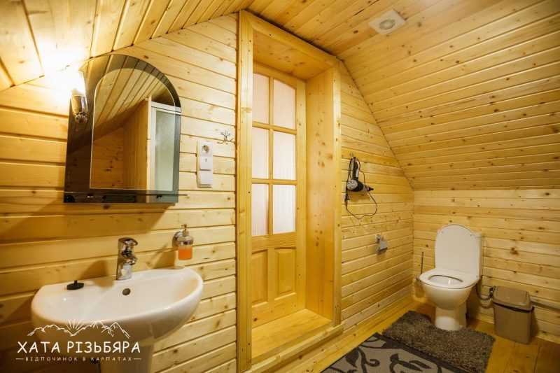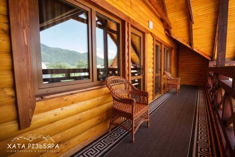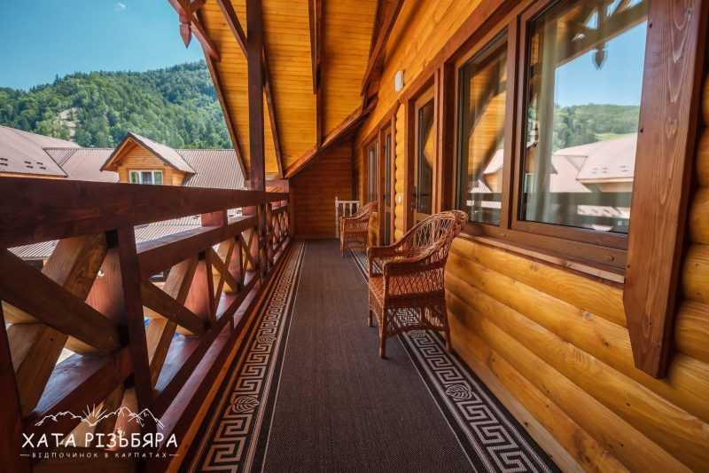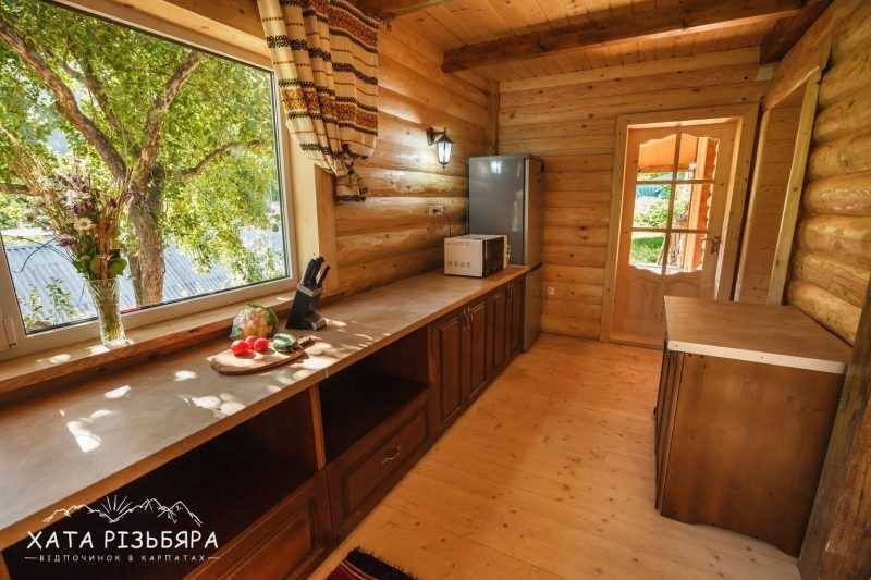 Дерев’яний котедж на 4 номери (2х та 3х місні). Повністю обладнана кухня та їдальня. Два санвузли. Простора територія з унікальним ландшафтним дизайном. Дві зручні альтанки. Здається по номерам.