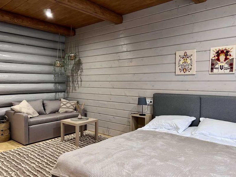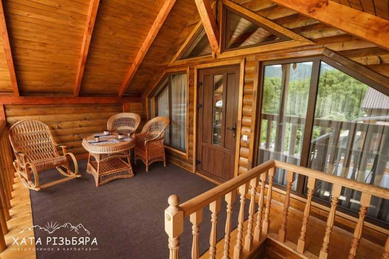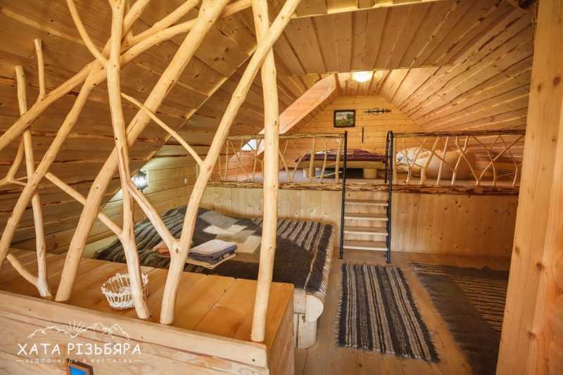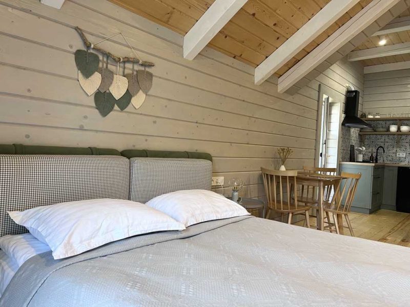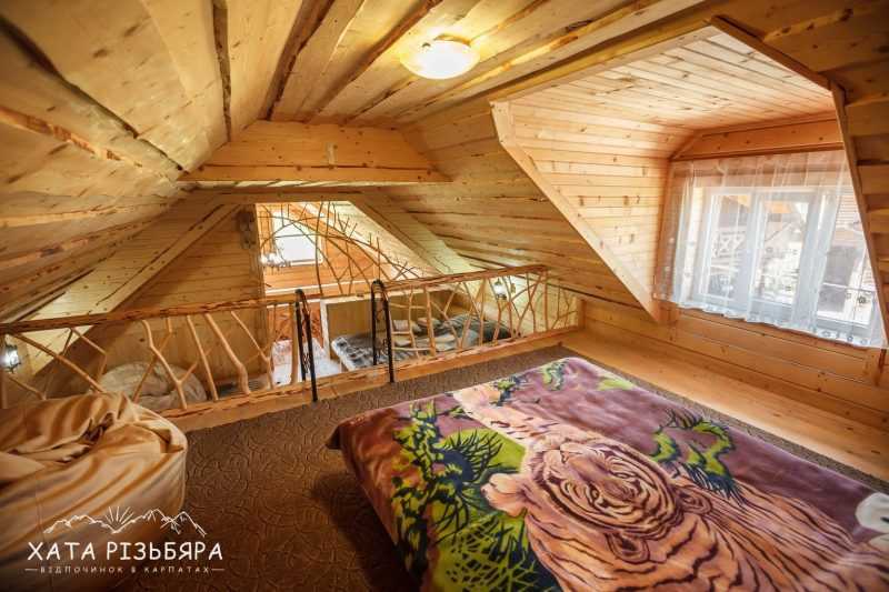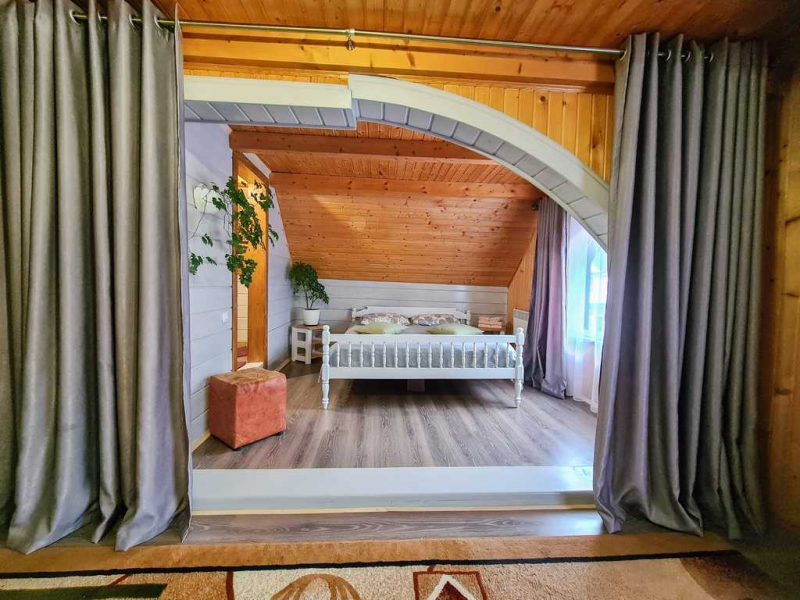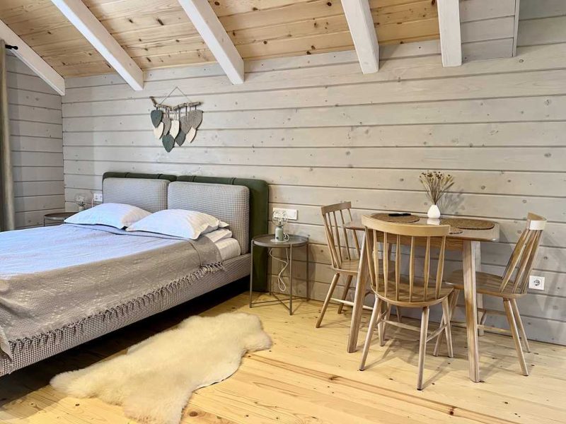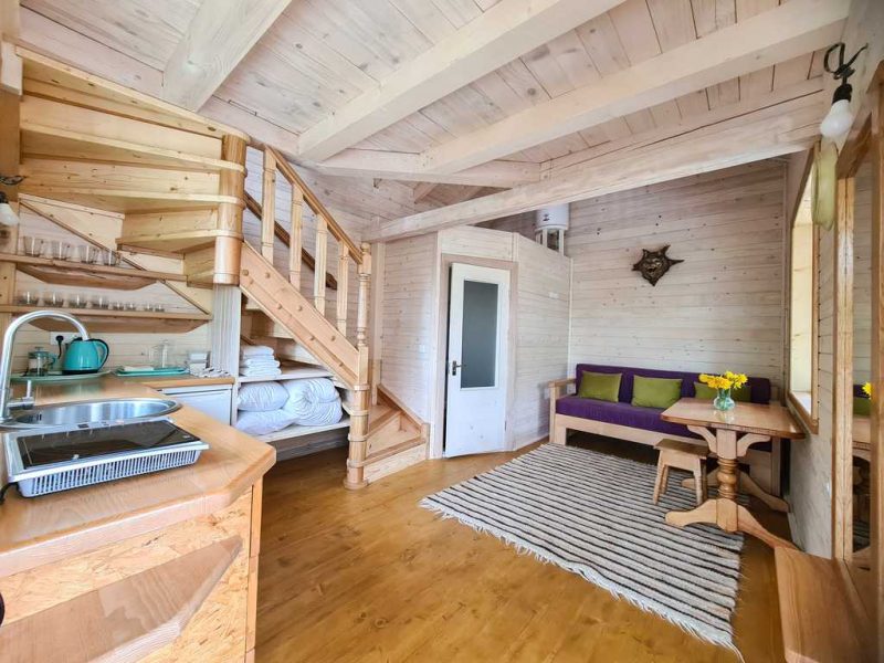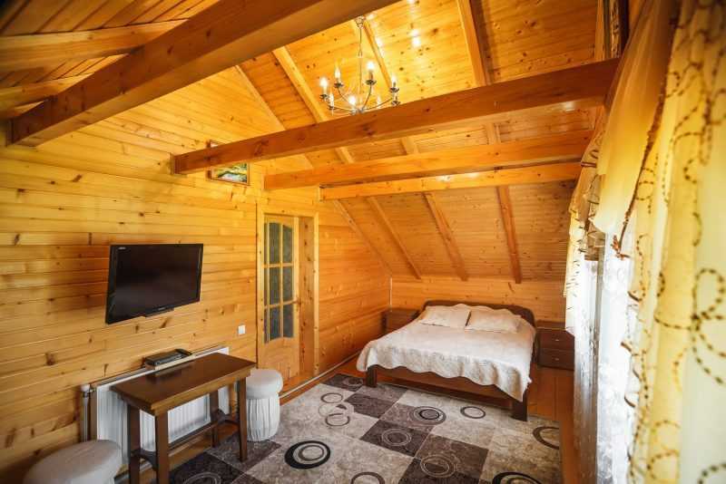 Однокімнатний дерев’яний котедж на 2-4 гостей з окремим входом, власною терасою та унікальним інтер'єром. Котедж на 2 рівні: перший - зона відпочинку, другий - простора спальня. Свій санвузол.
