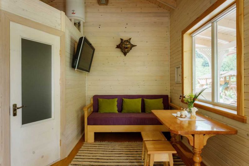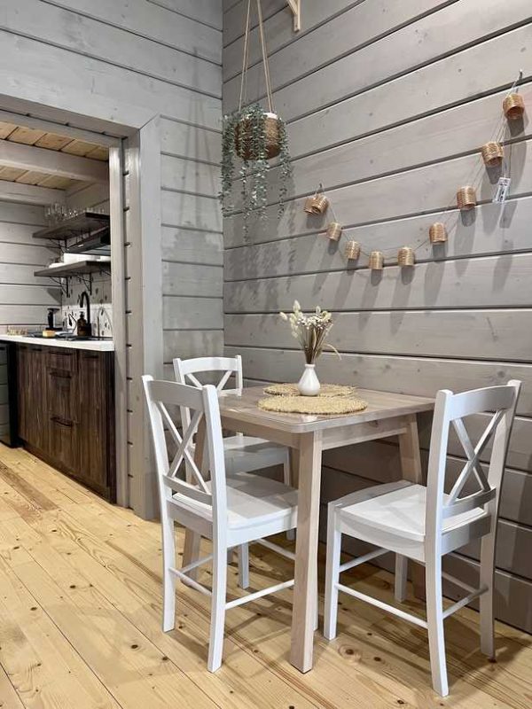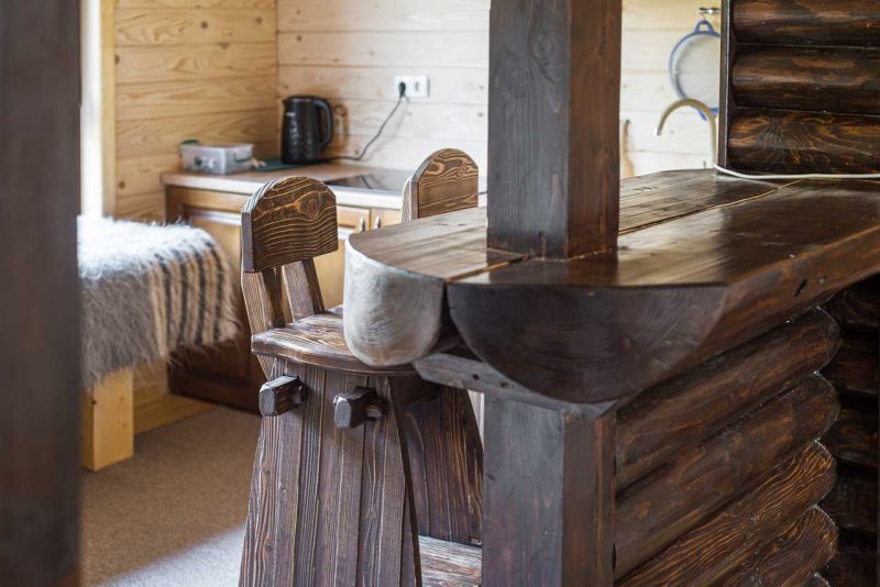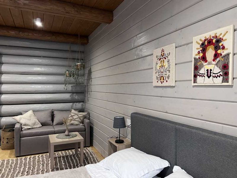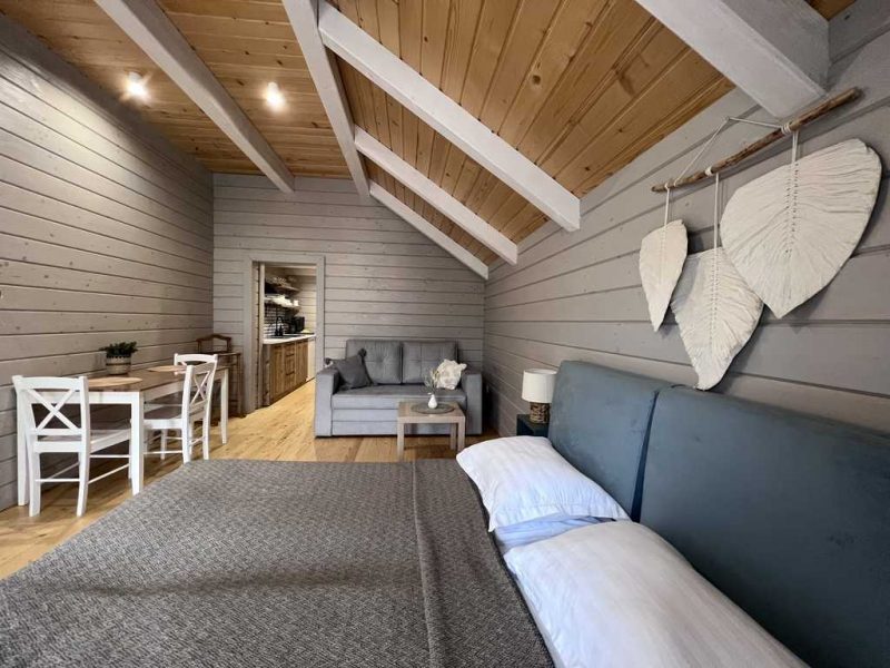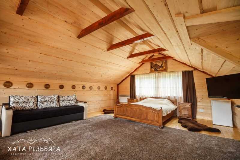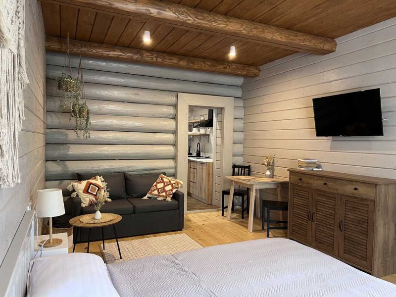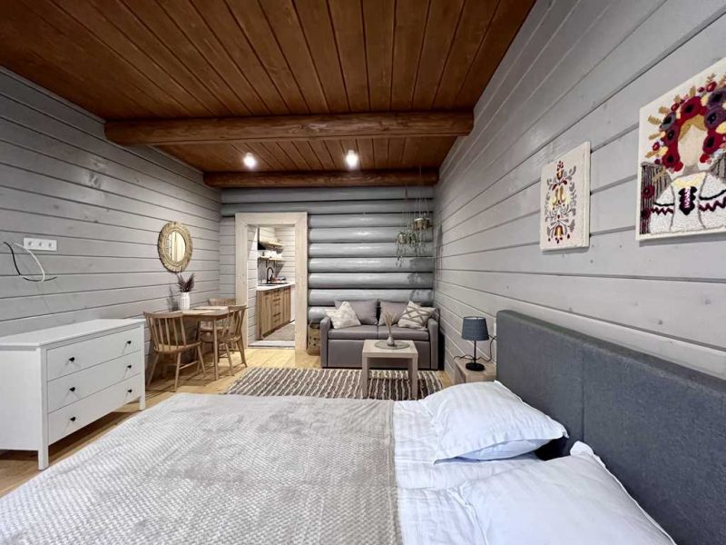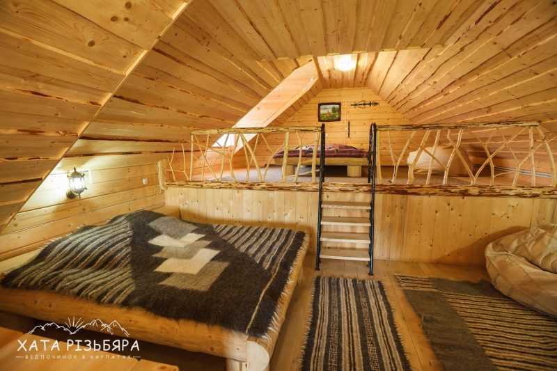 Однокімнатний дерев’яний котедж на 2-4 гостей з окремим входом, власною терасою та унікальним інтер'єром. Котедж на 2 рівні: перший - зона відпочинку, другий - простора спальня. Свій санвузол.