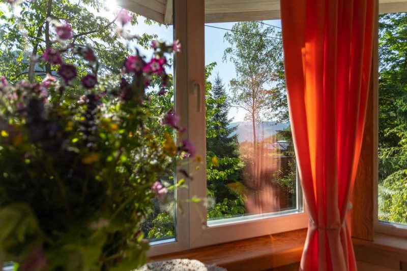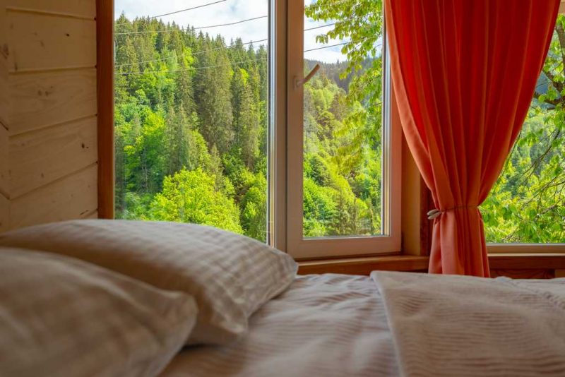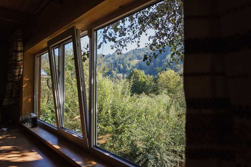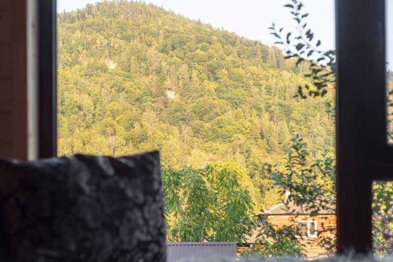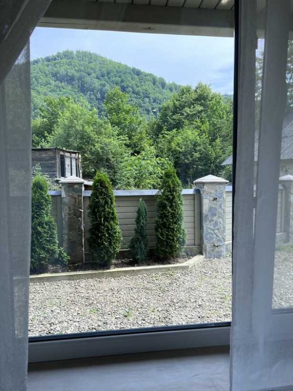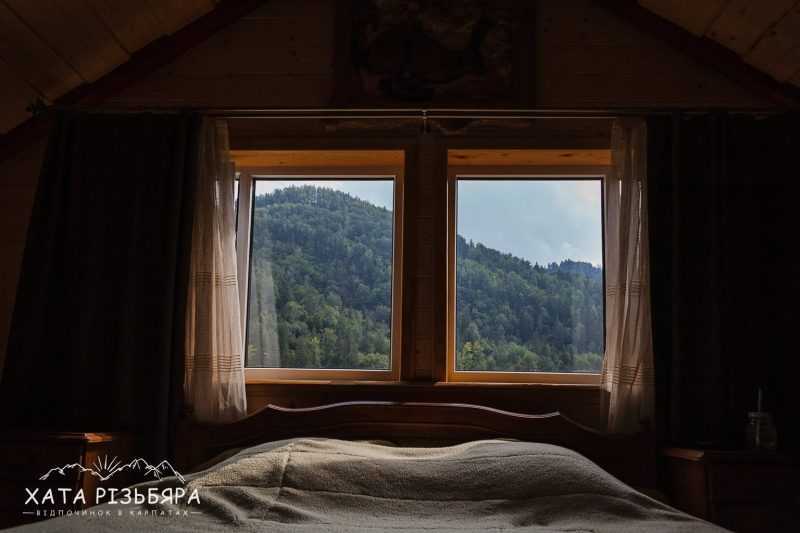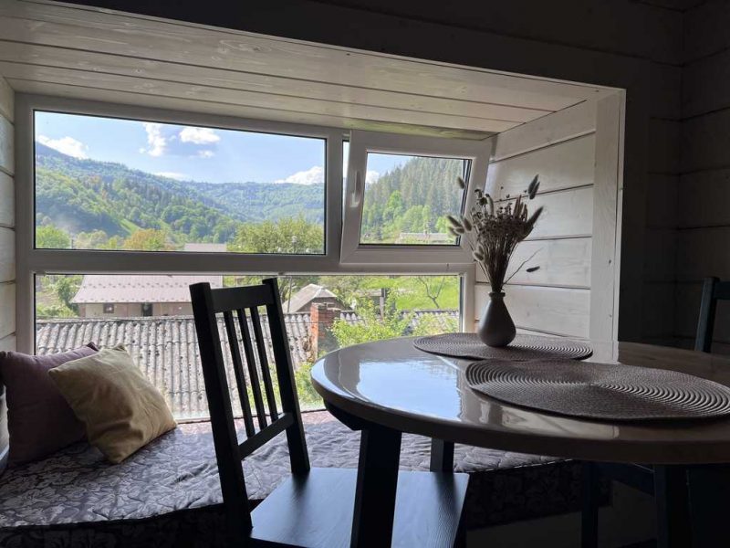 3ій поверх, великі панорамні вікна з видом на гори, 2-3 гостей, свій санвузол, своя кухня. Двоспальне ліжко та лежак під вікном. Кондиціонер. Швидкісний інтернет