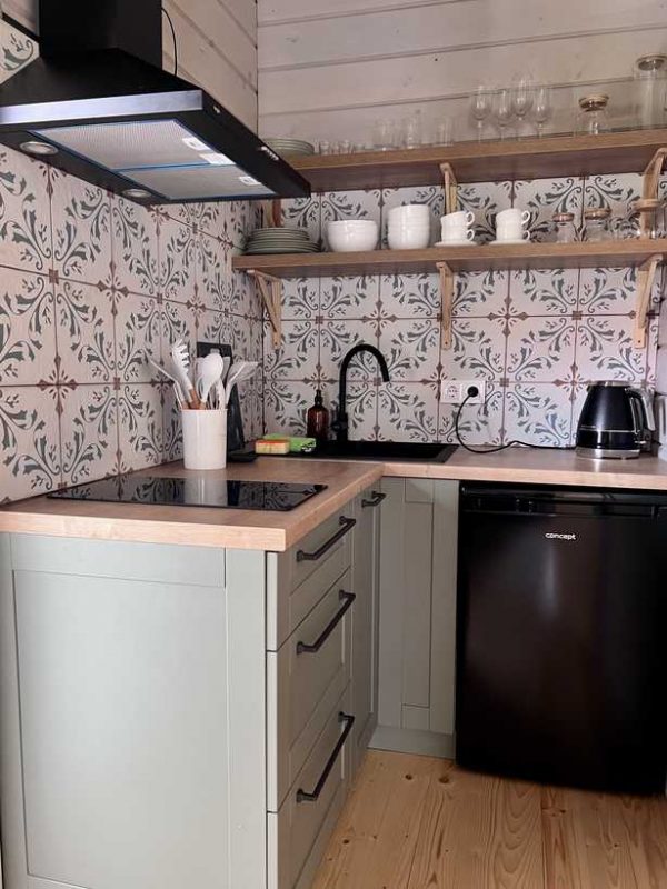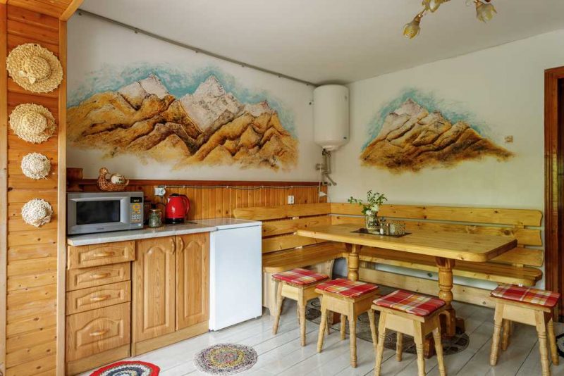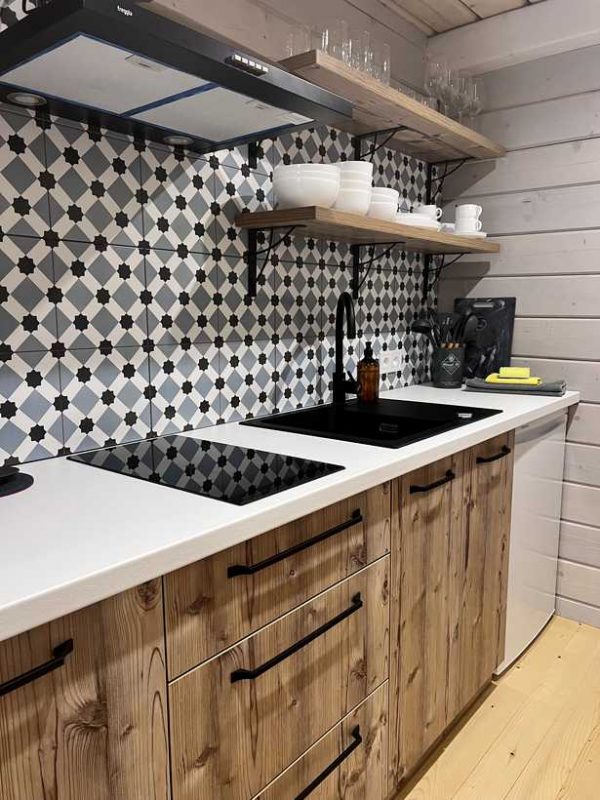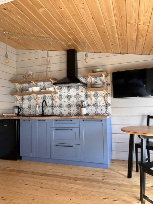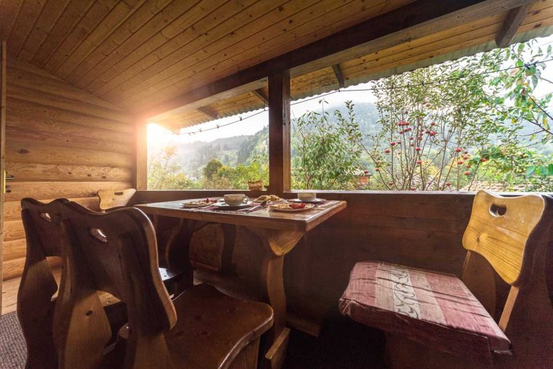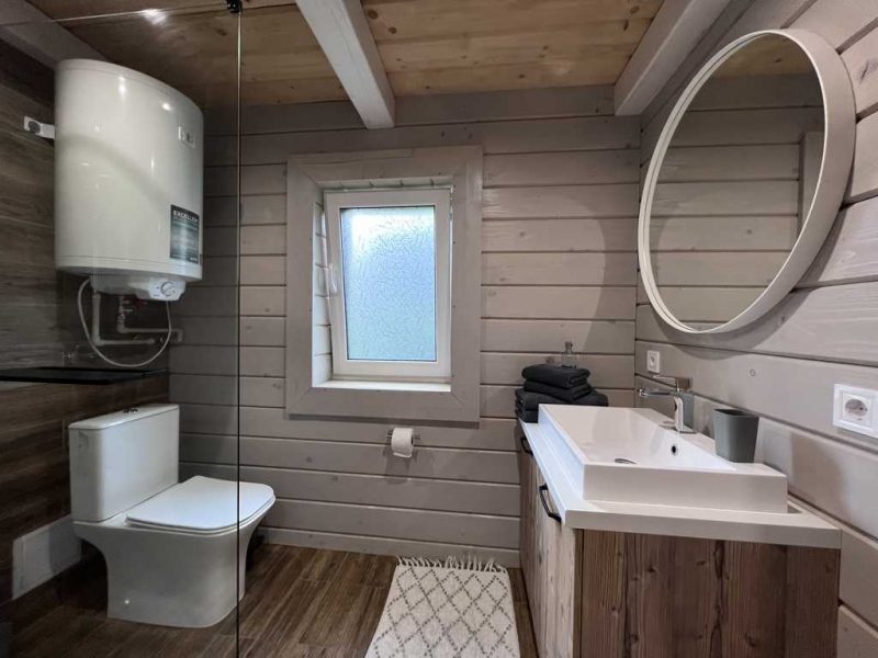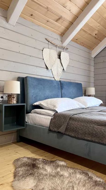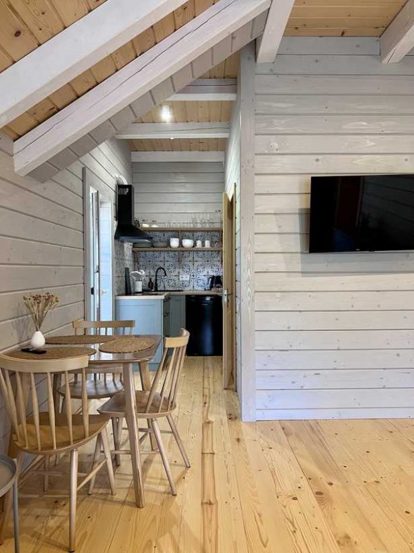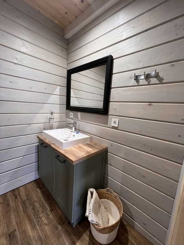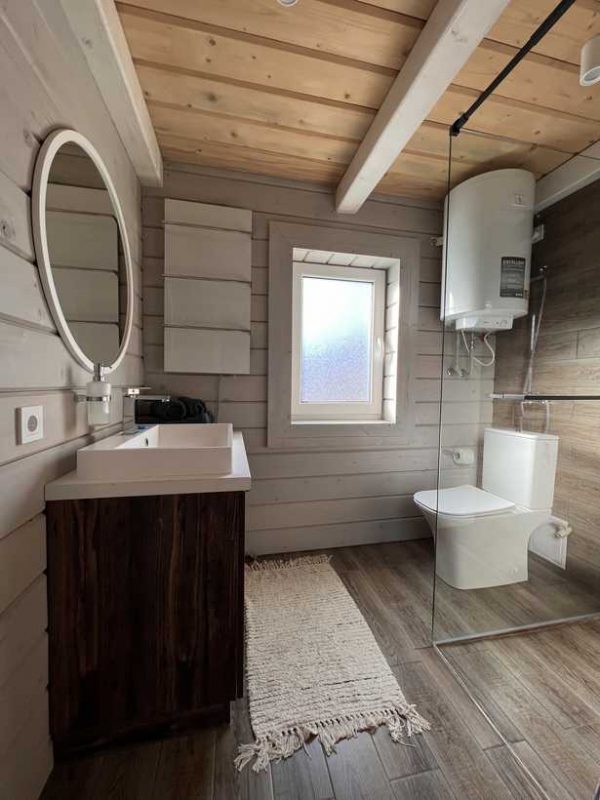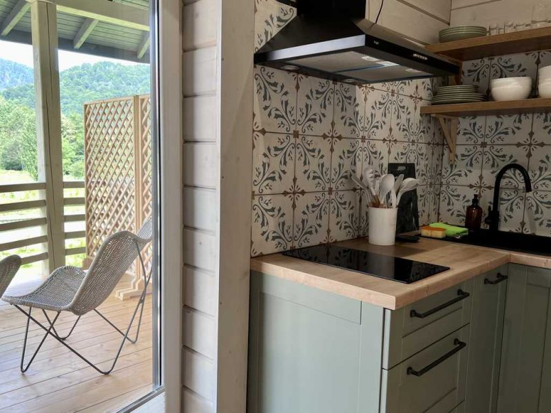 Окремий дерев’яний котедж на 4-6 гостей. Дві спальні зі своїми санвузлами та великими панорамними вікнами з гірськими краєвидами. Кухня-студія з усім кухонним обладнанням. Дві просторі тераси.