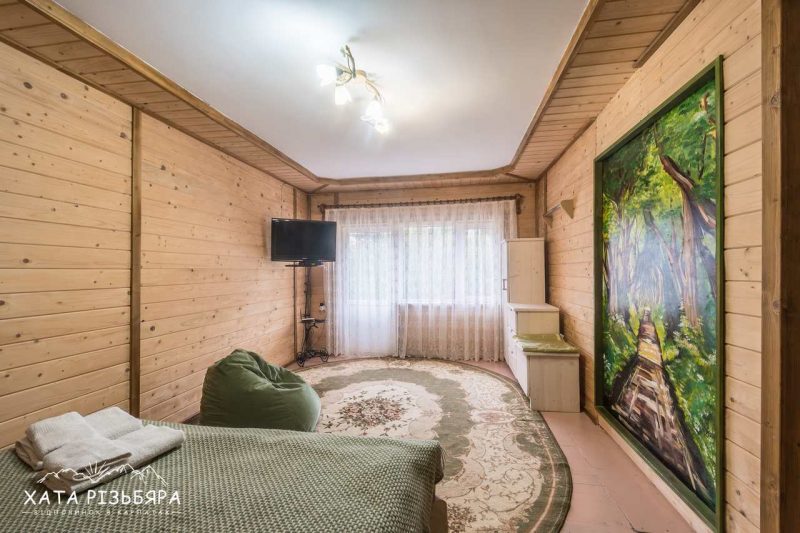 Однокімнатний номер з власною кухнею та окремим входом на 2-4х гостей. Свій санвузол. Відкрита тераса, великі панорамні вікна з лавкою-лежаком. Двоспальне ліжко та розкладний диван.