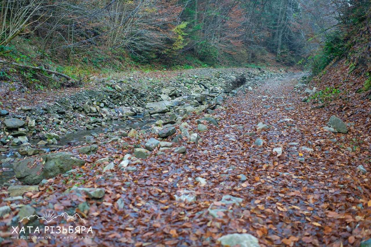 Завітавши до Нижнього Гука, бачимо, як дорога втікає через міст на хребет, але ми йдемо собі стежкою вздовж потоку.