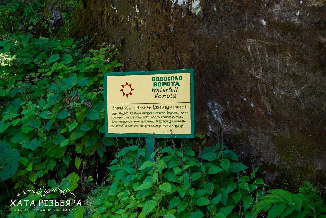 Приблизно через 100 м приходимо до Воріт, які виростають кам’яною стіною заввишки у 3,5 м. Водоспад Ворота направду нагадує браму і, щоб потрапити далі, необхідно скористатись спеціальними дерев’яними сходами.