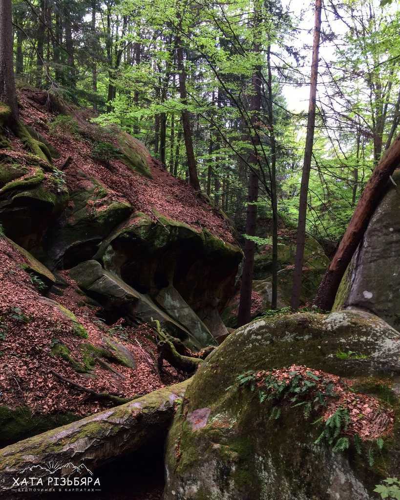 За наявності сил та бажання можемо ще трішки прогулятись лісом і оглянути декілька менших скельних масивів. А далі час вертатись у сторону перевалу.