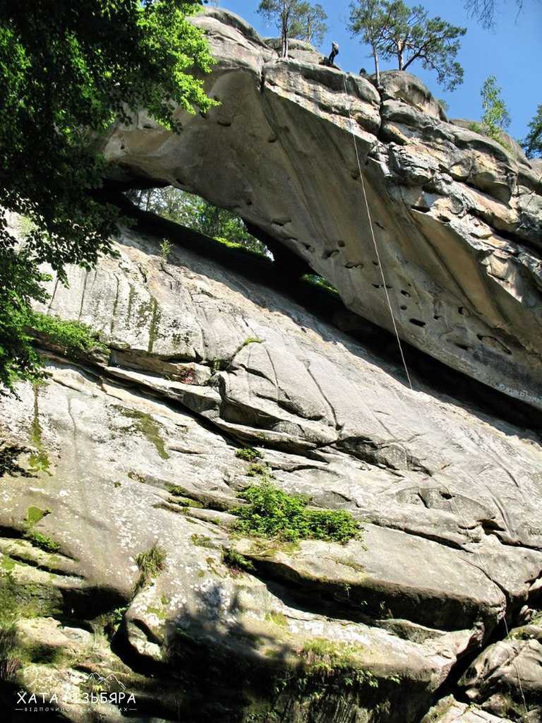Неспішно йдемо далі, вдихаючи аромати природних ефірних олій. Ще трошки і перед нами постають скелі Протяте каміння. Звісно, найбільш манливою є Соколине око. Це найвища скеля у цьому комплексі, яка сягає 40 метрів у висоту. Вона цікава тим, що направду має кам’яну арку, подібну до ока.