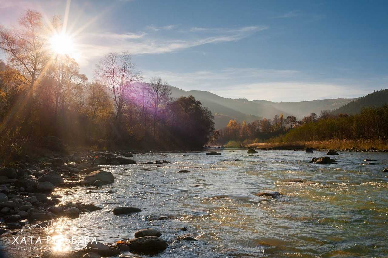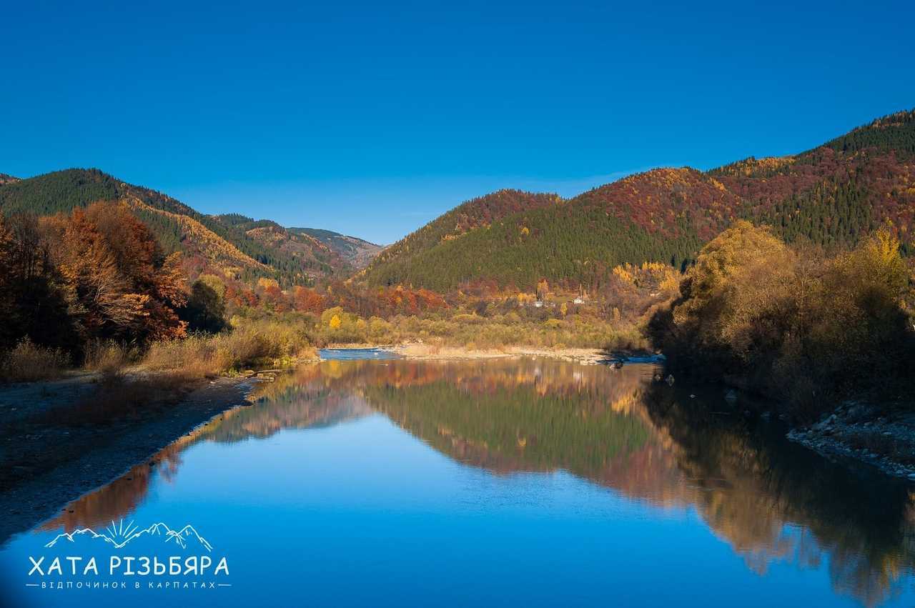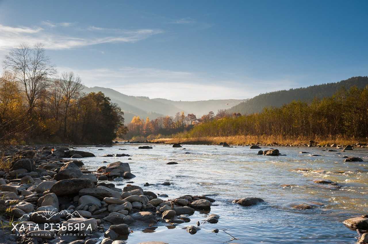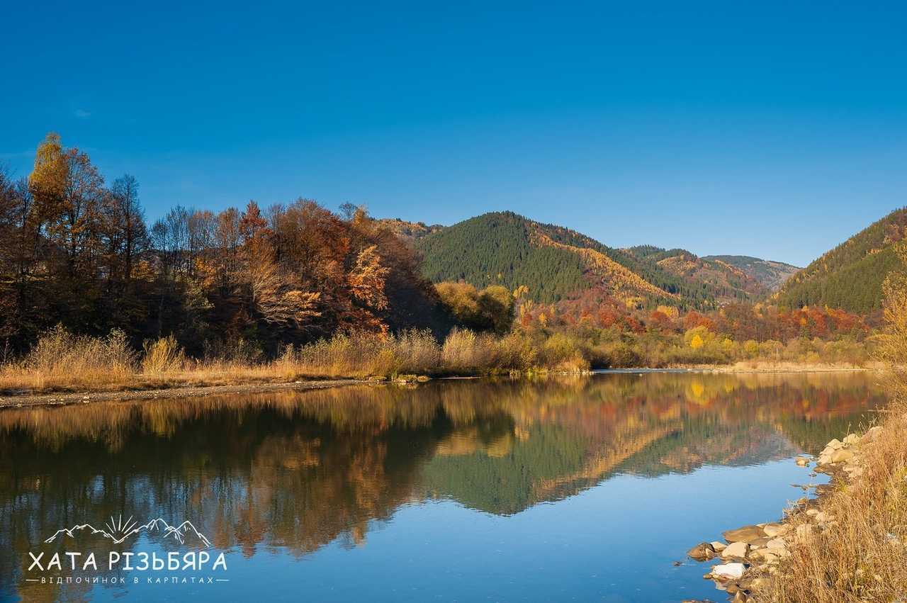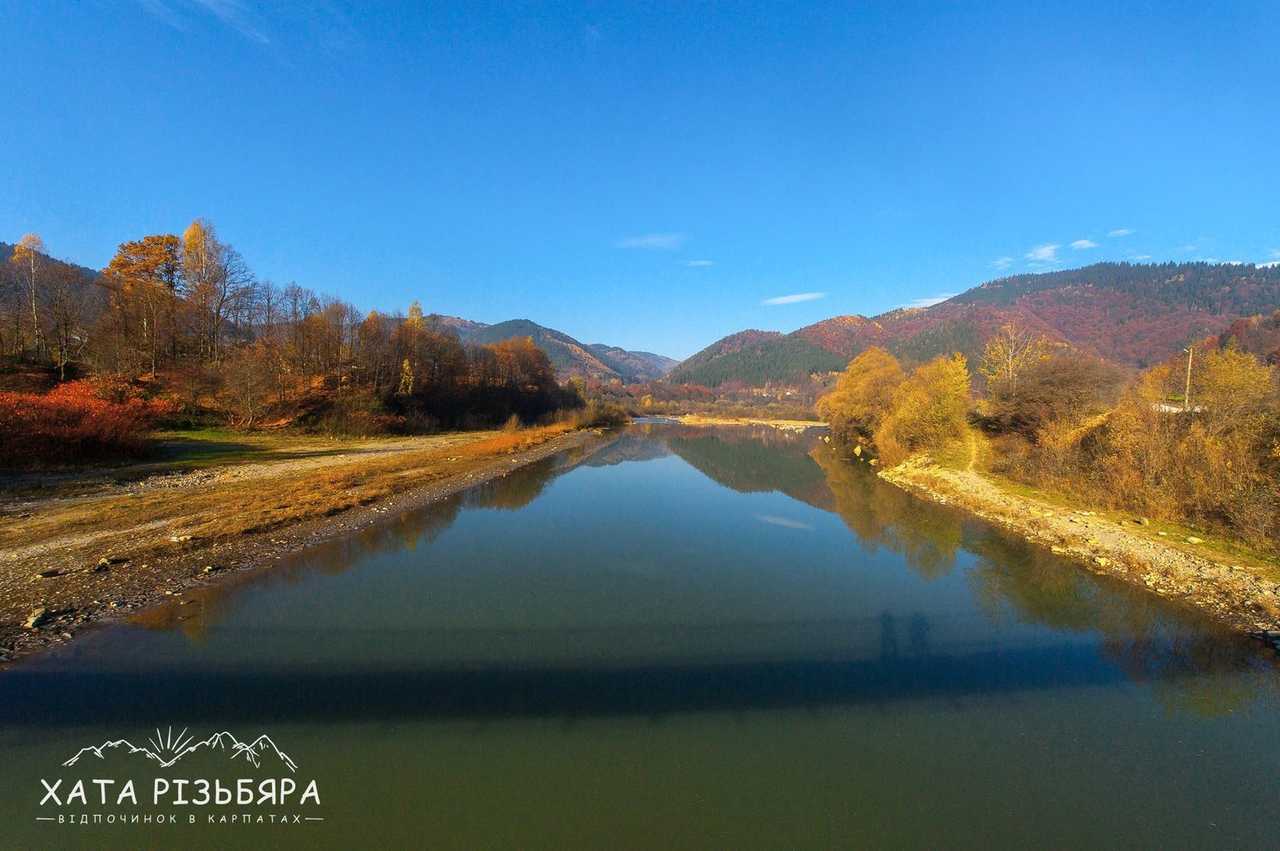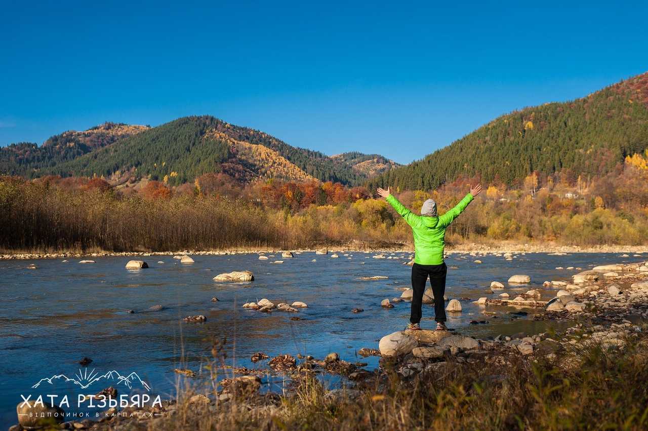 рівень складності 1 Коли відпочиваєш в Карпатах і доста нагуляєшси по горбах, то хочеться гарно погрітися на сонечку біля води. Завдяки наявності водойми, туристові додається ще цілий ряд атракцій: рибалка, пляж, рафтинг, фотосесії, неповторні заходи і світанки. Як файно, що вже за 100 метрів від садиби «Хата Різьбяра» біжить потоком річка Черемош.