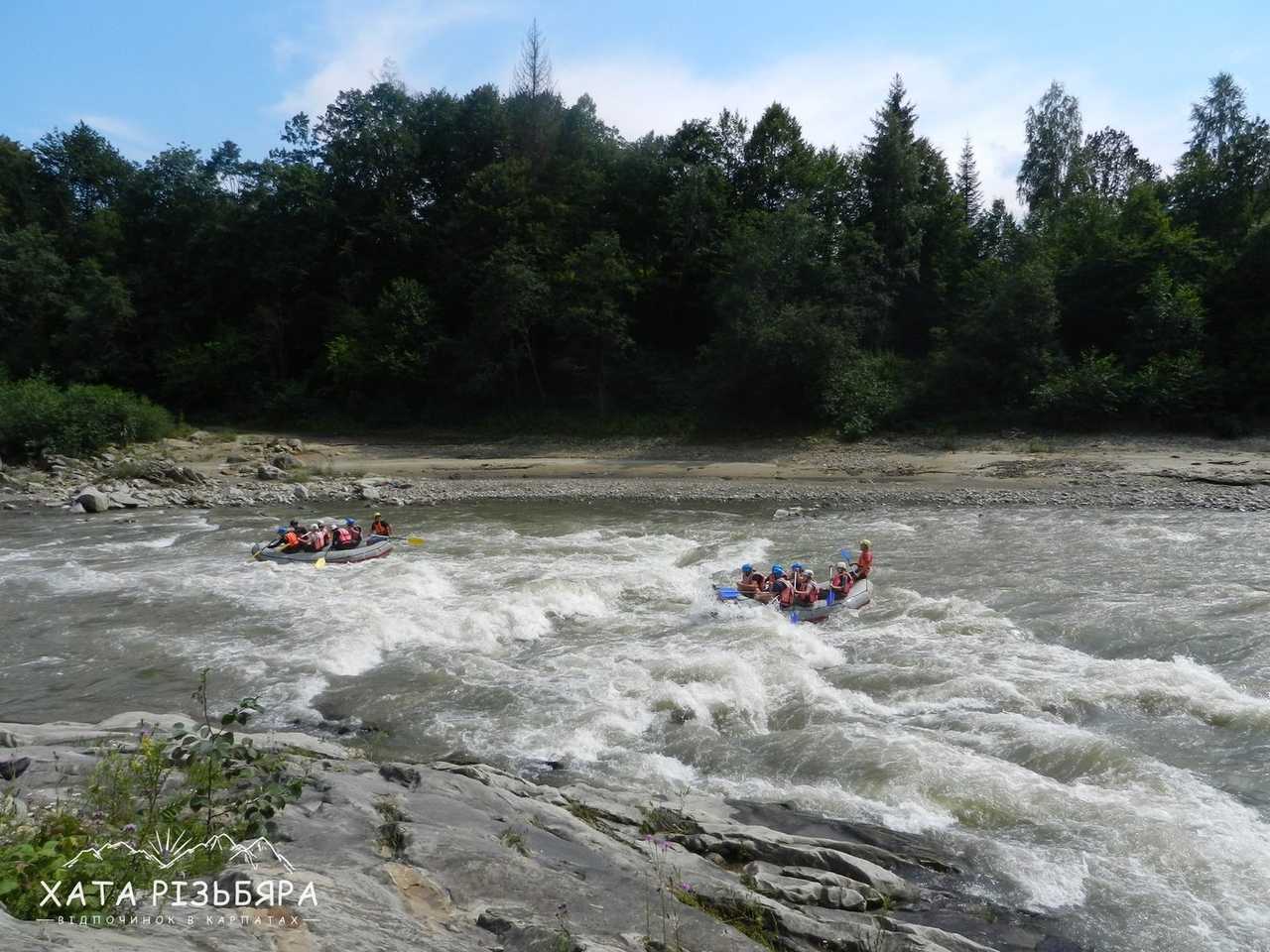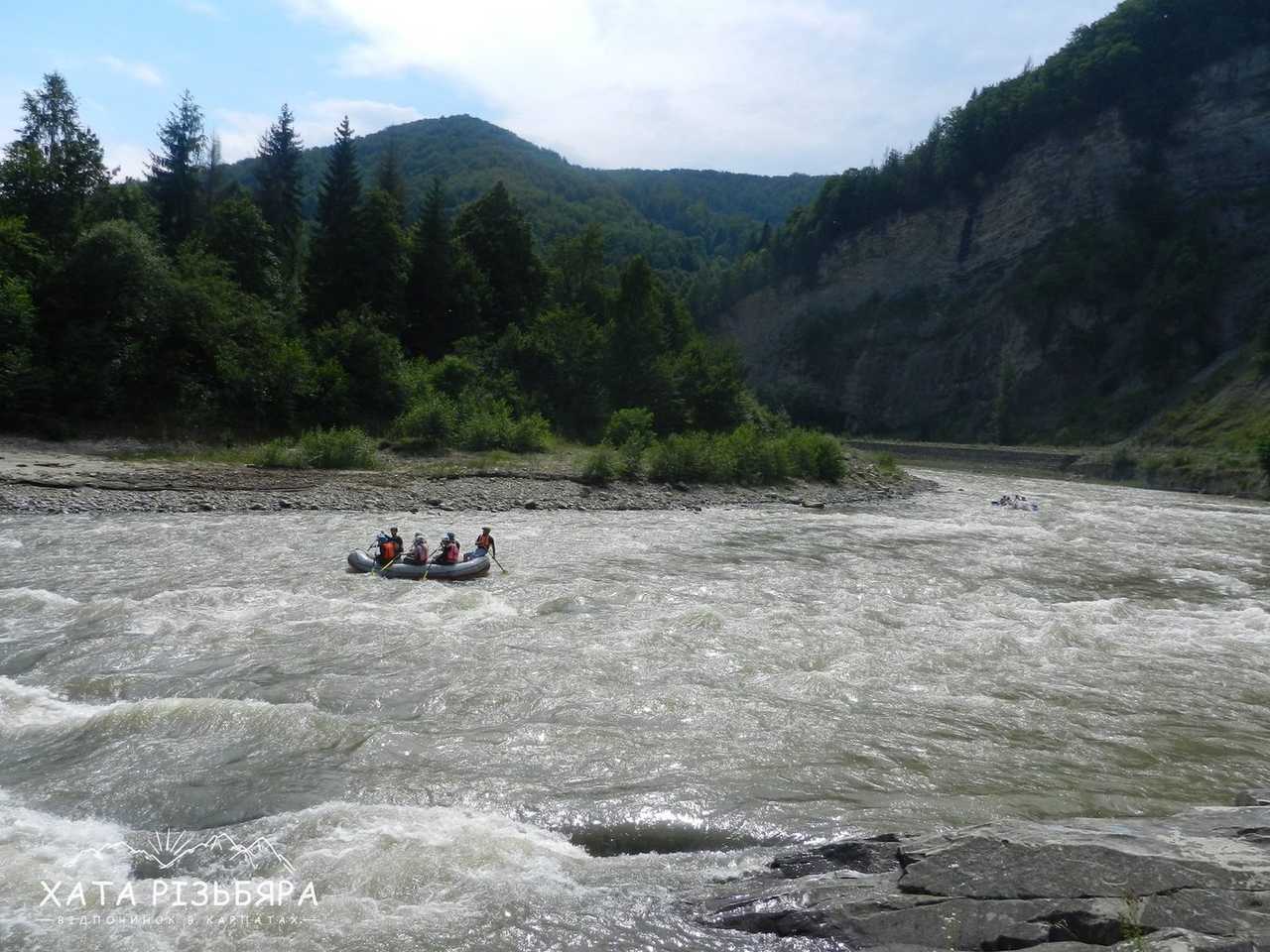 Опісля сідаємо у рафт, відчалюємо від берега і починаємо неймовірну пригоду. Інструктор, як дбайливий батько, завжди з нами. Щось підкаже, десь поправить та триматиме усе під контролем. Ми заздалегідь узгодили маршрут: проходимо або простий для новачків або більш складний з пошуком адреналіну. Відповідно, ми можемо спокійно розглядати навколишні краєвиди або відчувати пришвидшене серцебиття від чергового швидкісного порогу примхливого Черемошу.